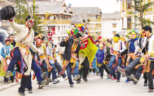 每年農(nóng)歷正月初九,當(dāng)?shù)夭刈逋家e行慶?;顒?dòng),迎接萬(wàn)物萌生,慶賀去年豐收,表達(dá)對(duì)天的敬仰。今年的慶?;顒?dòng)與往年不同,作為蘆山地震災(zāi)區(qū),當(dāng)?shù)夭刈逋趹c祝傳統(tǒng)的“上九節(jié)”時(shí),也寓意要用歡樂、感恩、奮進(jìn)的精神狀態(tài)投入到恢復(fù)重建中。