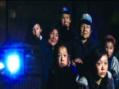 圖片名稱:認真看電影的村民